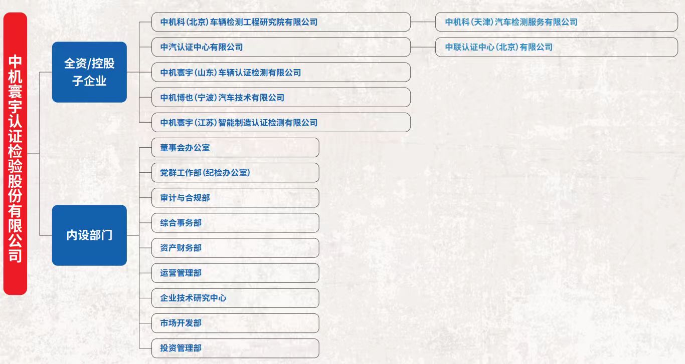 中机寰宇认证检验股份有限公司(简称:中机认检)成立于2003年,总部位于北京,注册资本2.26亿元,是国务院国资委直属中央企业中国机械科学研究总院集团有限公司的控股子公司。