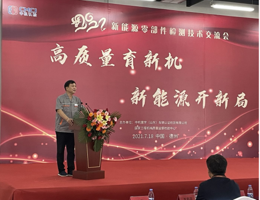 2021年7月18日,中机认检中机车辆在山东德州打造的首个集标准、认证、检测为一体的综合服务平台一期工程正式落成,该项目填补了山东省认检服务平台的空白,是中机认检着力打造原创技术策源地的重要举措之一。当日,在落成的认检大楼内举行了新能源零部件实验室揭牌仪式暨新能源零部件检测技术交流会。中机认检党委书记、董事长付志坚,党委副书记、总经理牛海军,中机车辆总经理李铁生,德州经济技术开发区党工委书记、管委会主任王震秀等领导,中机认检下属公司中机检测、中汽认证、中机智检、中机博也总经理和主要领导及企业代表150余人受邀参加,仪式由中机认检市场总监、中机车辆副总经理孙利主持。