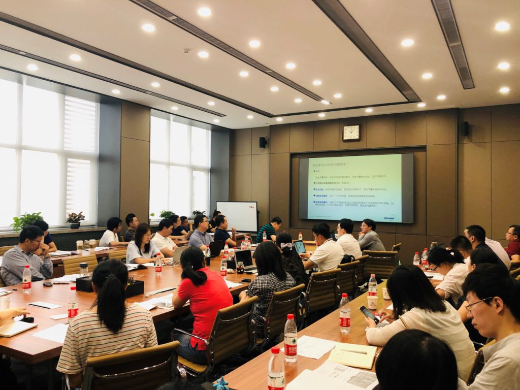 2019年9月9日,中汽认证中心有限公司(以下简称“中汽认证”)市场本部举办了“道路车辆功能安全ISO26262-2018 标准”专题培训,会议邀请TUV北德相关专家到会授课,中汽认证副总经理马麟、副总经理陈晓东、市场总监曹仲京等出席,中机认检企业技术研究中心、中汽认证中层干部、部分讲师及市场本部业务人员参加了培训。
