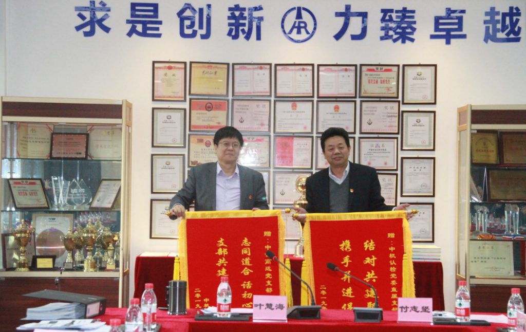 付志坚董事长与叶慧海董事长互赠锦旗:“志同道合,话初心、 践使命;支部共建,夯合作、促发展”,“结对共建聚合力,携手并进促发展”。
