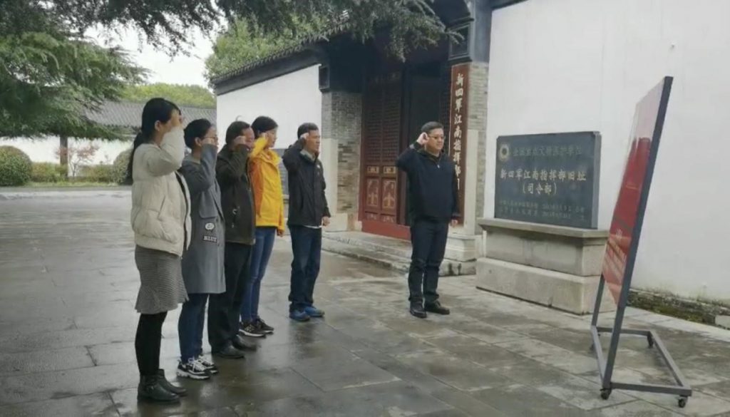 2020年11月20日,为深切缅怀新四军将士丰功伟绩,全面深入学习弘扬新四军的“铁军精神”,中机智检党支部带领全体党员和干部职工,以党建带群团的形式,前往常州市溧阳市前马镇水西村的新四军江南指挥部旧址参观学习,开展以深入学习贯彻十九届五中全会精神为主线,主题为“重温红色记忆,坚守初心使命”的主题党日活动。