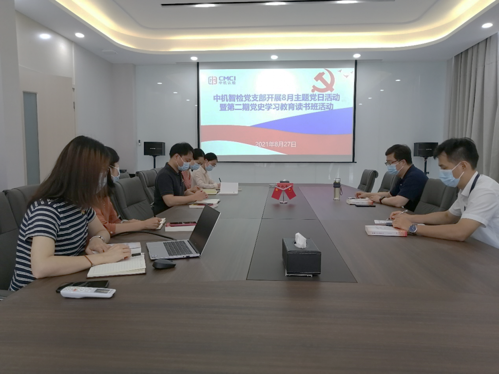 2021年8月27日上午,中机智检党支部在公司第一会议室开展月党日活动暨第二期党史学习教育读书班活动,学习研讨《中国共产党简史》。会议由支部书记陈晓东同志主持,公司全体党员参会。