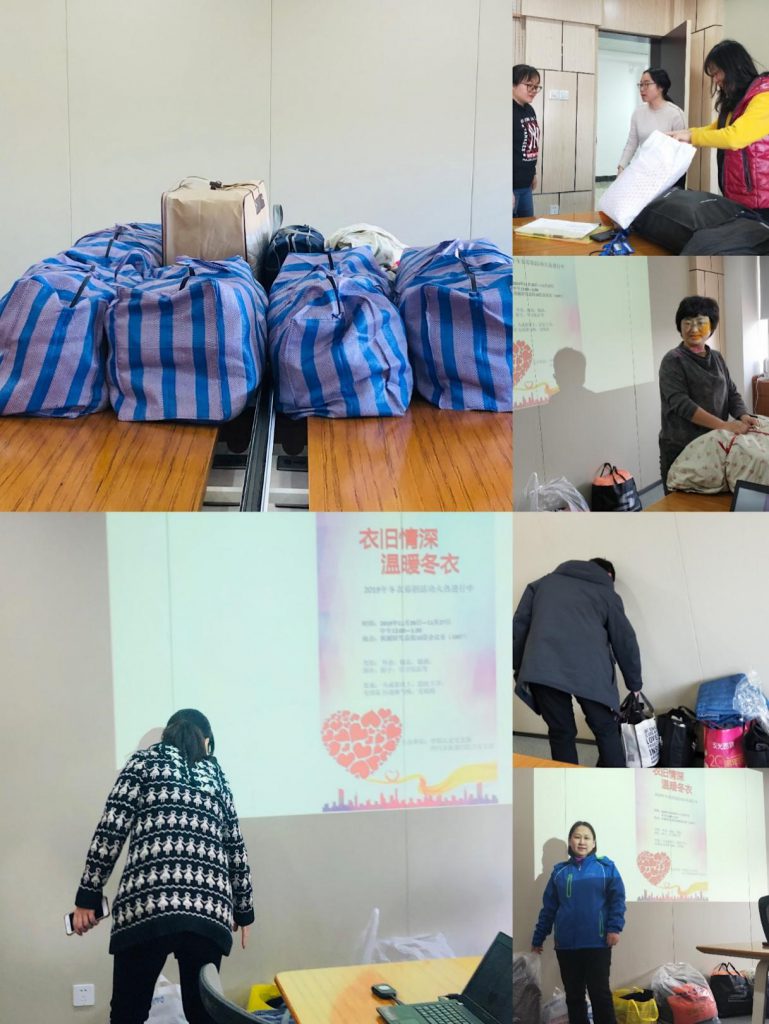 2019年11月26-27日,中联认证党支部与中汽事业部门联合党支部共同开展“不忘初心、牢记使命”主题党日——“衣旧情深,温暖冬衣”爱心捐赠活动,为最需要的人送去一份寒冬里的温暖,让爱传递。