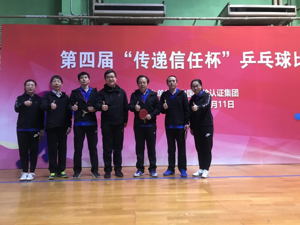 赛场传递信任 、团结彰显精神中机认检代表队获得第四届“传递信任杯”乒乓球比赛优胜奖
