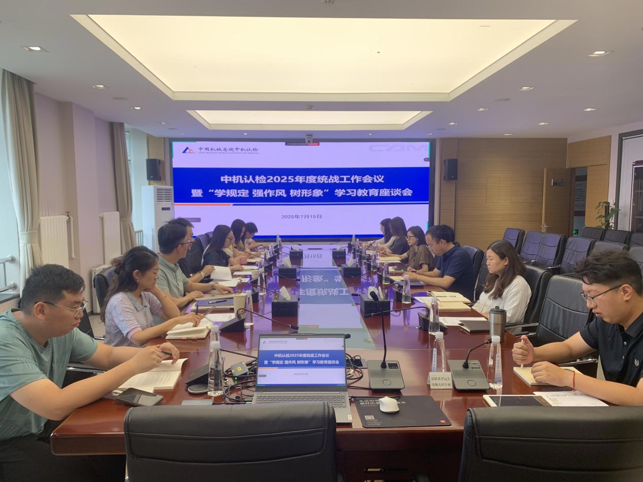 7月15日,中机认检召开2025年度统战工作会议暨“学规定强作风 树形象”学习教育座谈会,两级公司分管统战工作的领导班子成员、统战人士代表及统战相关工作人员共计30余人参会。中机认检党委委员、副总经理李铁生出席会议并讲话,会议由党群工作部副部长吉扬主持。