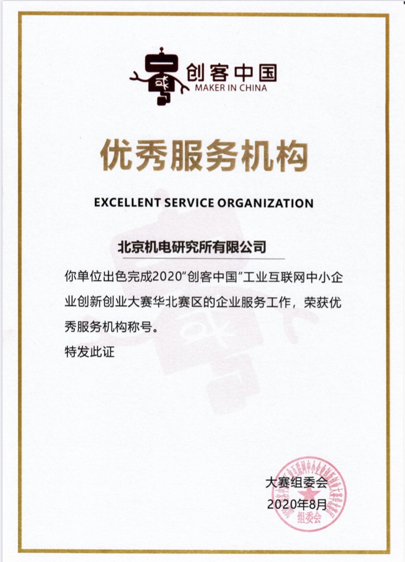 “创客中国优秀服务机构奖”是对我所在创客中国大赛中所做出的工作的高度肯定,是对我所创新企业孵化器服务创新团队能力上的高度认可。作为创新企业孵化器本身,我们将不负机电所领导的殷切期望,继续瞄准“智能制造”总体发展方向,服务智能制造产业链上的科技型中小企业,汇聚机械科学研究总院资源,为广大创客提供全方位的支持。