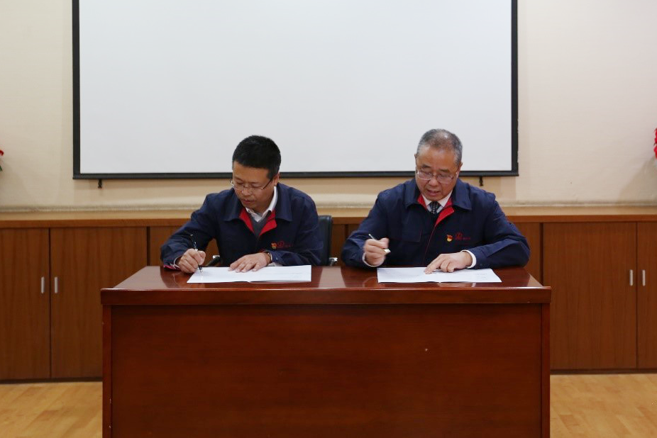 梁丰收董事长分别与科研生产部门负责人签订了年度经营业绩责任书,并为本命年的职工代表赠送红围巾,大会在一片欢声笑语中完美落幕。