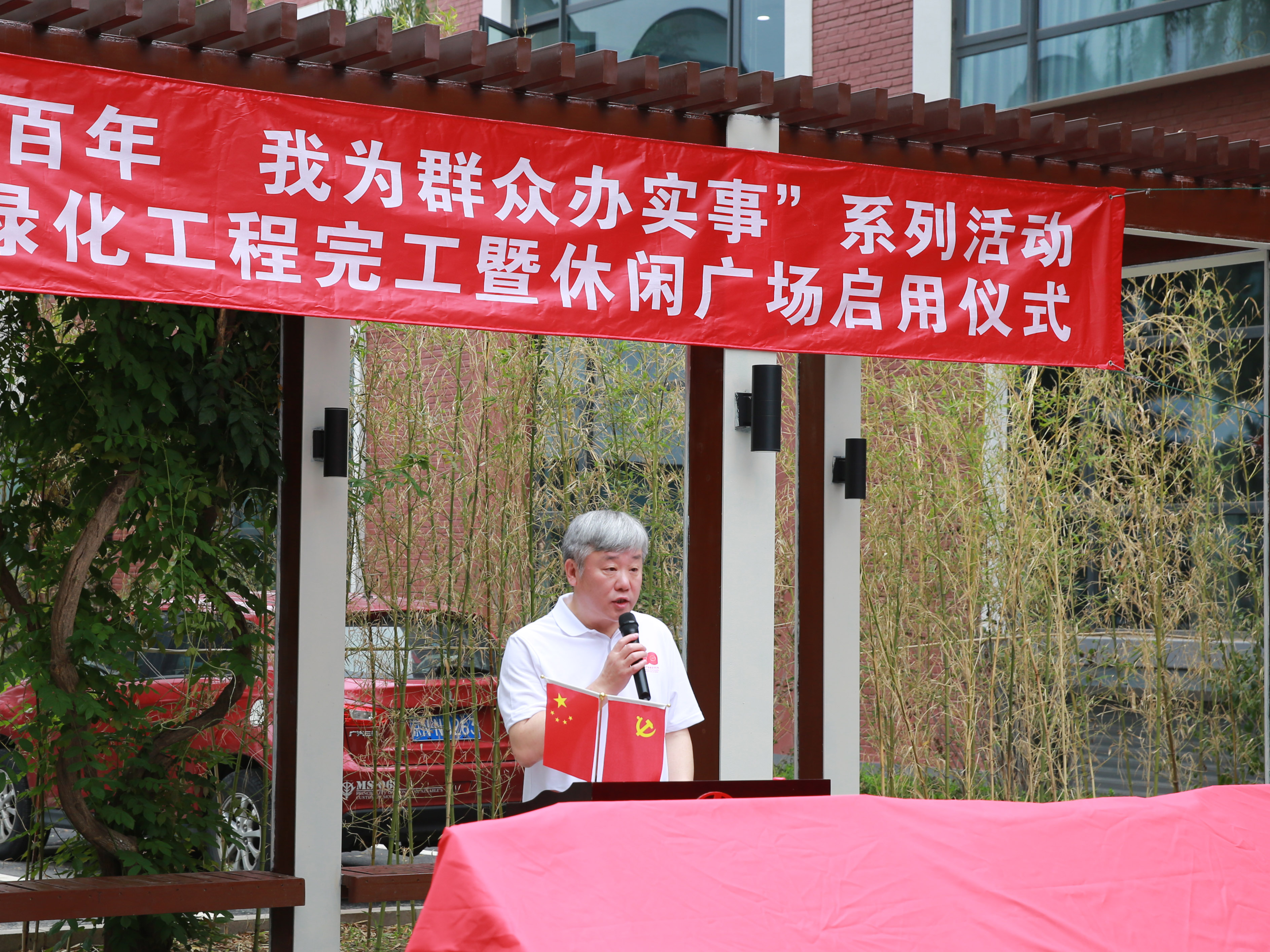为扎实推进党史学习教育走深走实,切实把“我为群众办实事”实践活动转化成为民服务的生动实践,6月28日,机电所举行了“庆祝建党一百年 我为群众办实事”园区绿化工程完工暨休闲广场启用仪式。
