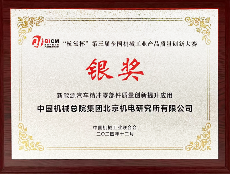 12月11日,由中国机械工业联合会主办的第三届全国机械工业产品质量创新大赛颁奖盛典在杭州成功举办,机电所“新能源汽车精冲零部件质量创新提升应用”在五百多个参赛项目的激烈竞争中脱颖而出,喜获大赛银奖。
