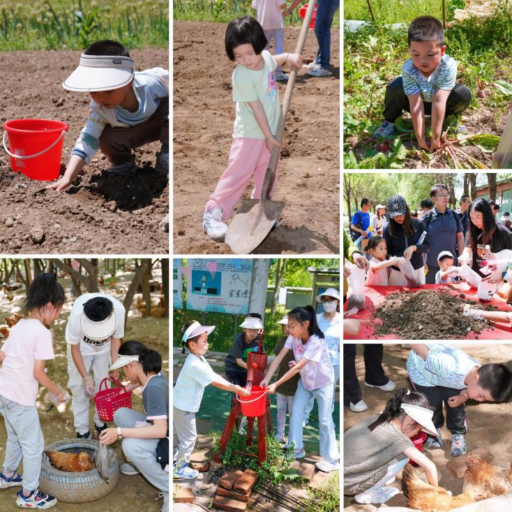 孩子们化身“小小农夫”,在阳光洒满的田野间开启了一场接地气的农业实践,挤压水井蹦出清冽的水花,挥动小铲子翻松泥土,埋下充满希望的种子,亲手培育蘑菇菌包,与母鸡展开捡鸡蛋“游击战”,沾着泥巴的小手捧着亲自采摘的萝卜青菜,感受没有黑板的自然课堂,体验土地教会人类的生存智慧。