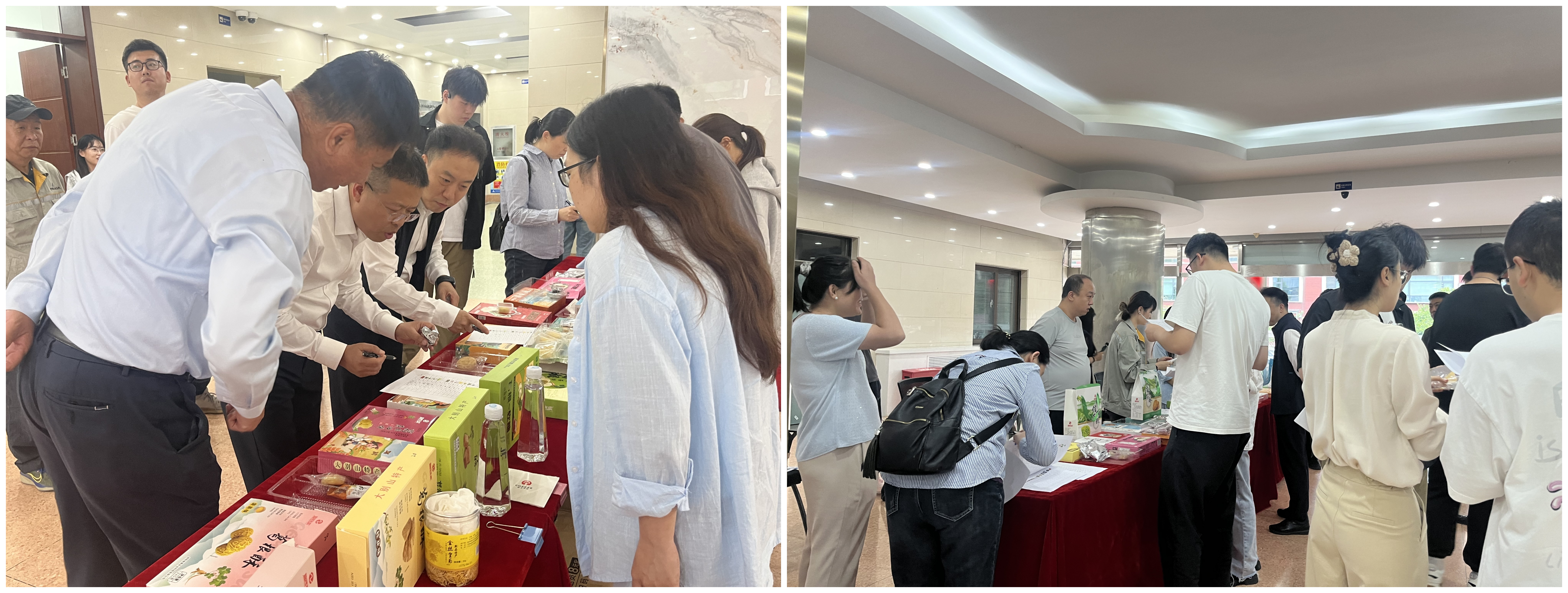在机电所“央企消费帮扶兴农周”产品展销会分会场,通过线上线下多元方式积极推动帮扶产品进园区、进工会、进食堂,班子成员以身作则,带头认购农产品,广大干部员工积极响应,踊跃参与购买,活动现场气氛热烈,热闹非凡。