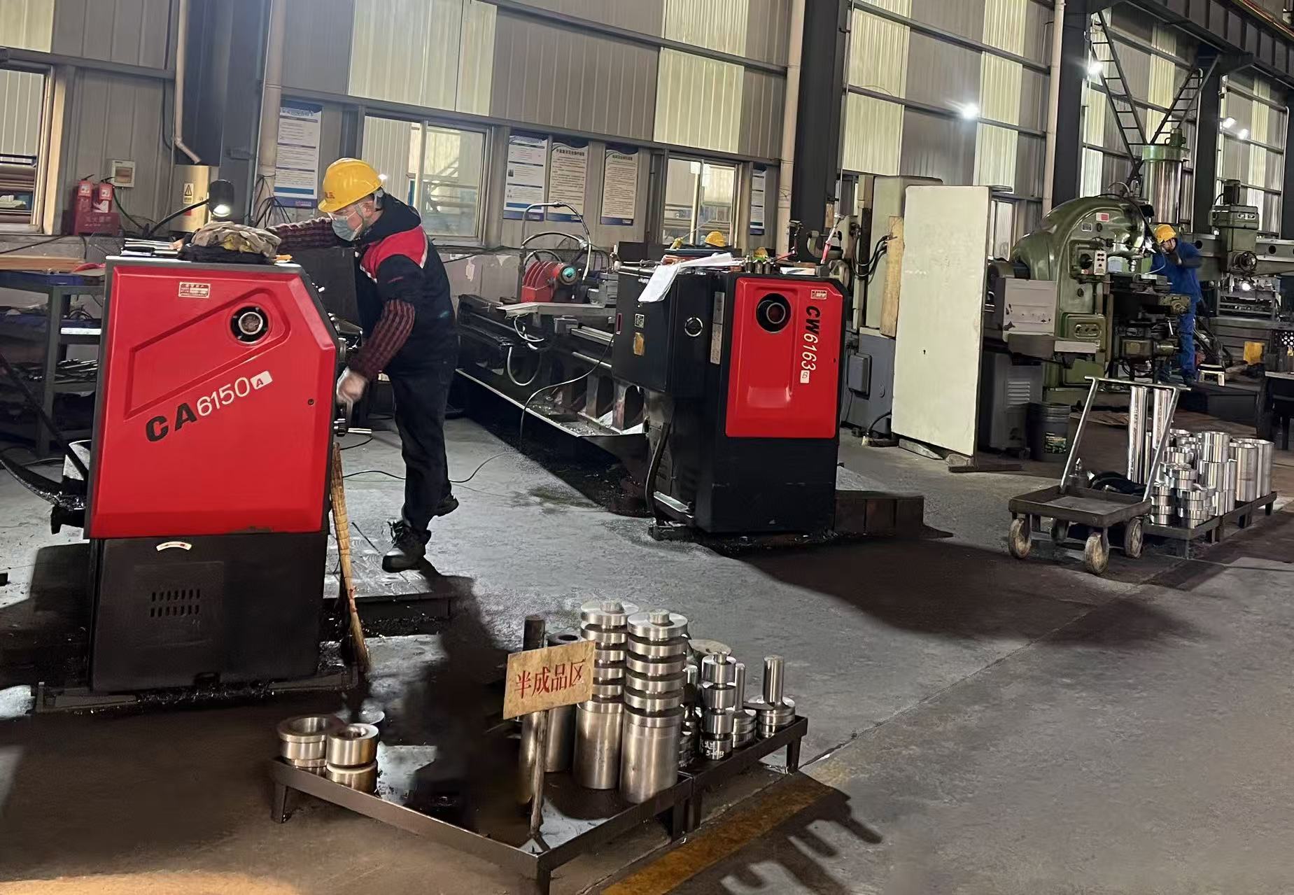 中机锻压车间机床轰鸣作响,操作人员正专注凝神打磨每一件工件,以严丝合缝的技艺为模锻锤装备打造可靠核心部件。
