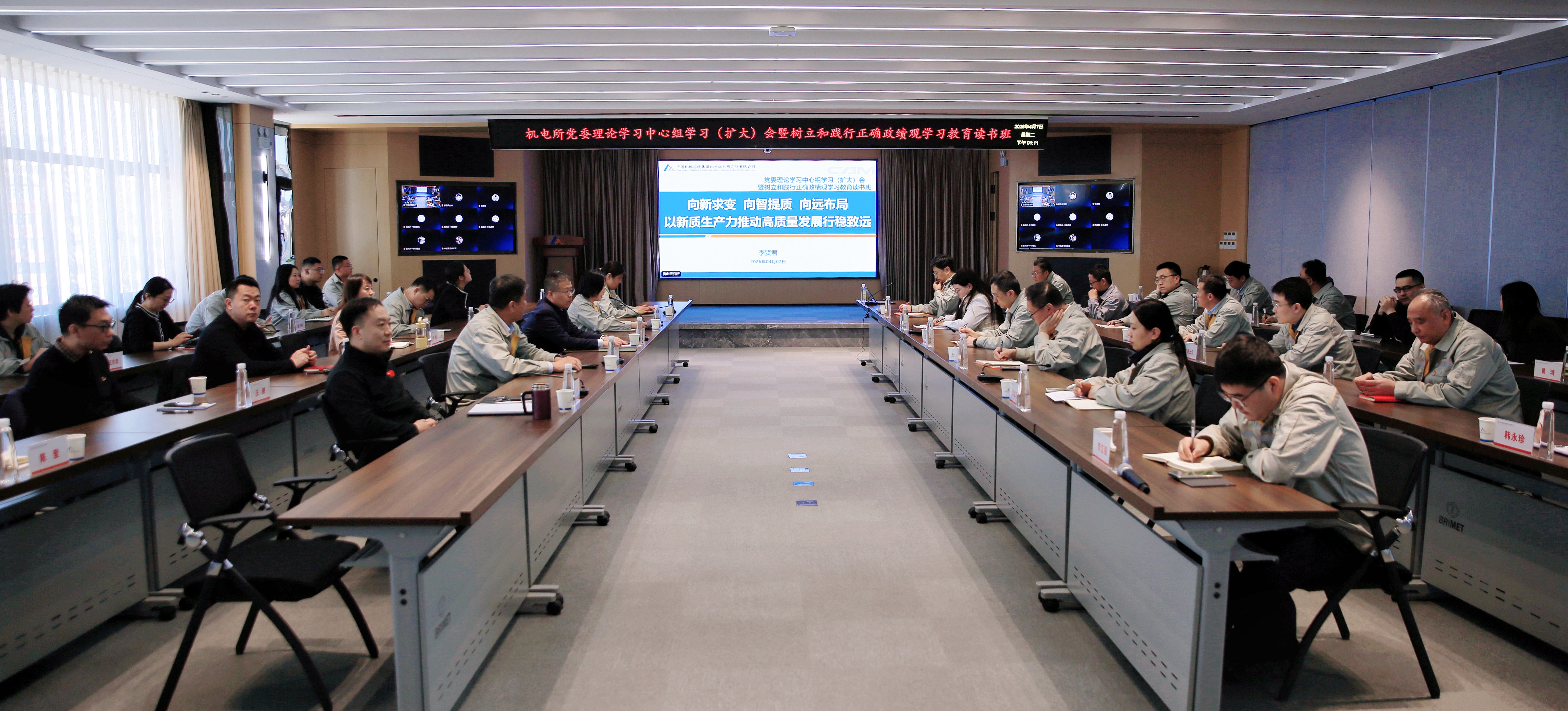 党委书记李贤君以《向新求变 向智提质 向远布局 以新质生产力推动高质量发展行稳致远》为题,领学了习近平总书记关于树立和践行正确政绩观、科技创新、产业发展等重要讲话精神和对中央企业工作作出的重要指示精神,宣贯了国家“十五五”规划纲要核心要义与实践要求,结合2026年政府工作报告,对机电所年度重点工作进行再动员再部署。公司班子领导、业务板块负责人逐一交流学习体会,明确落实举措。