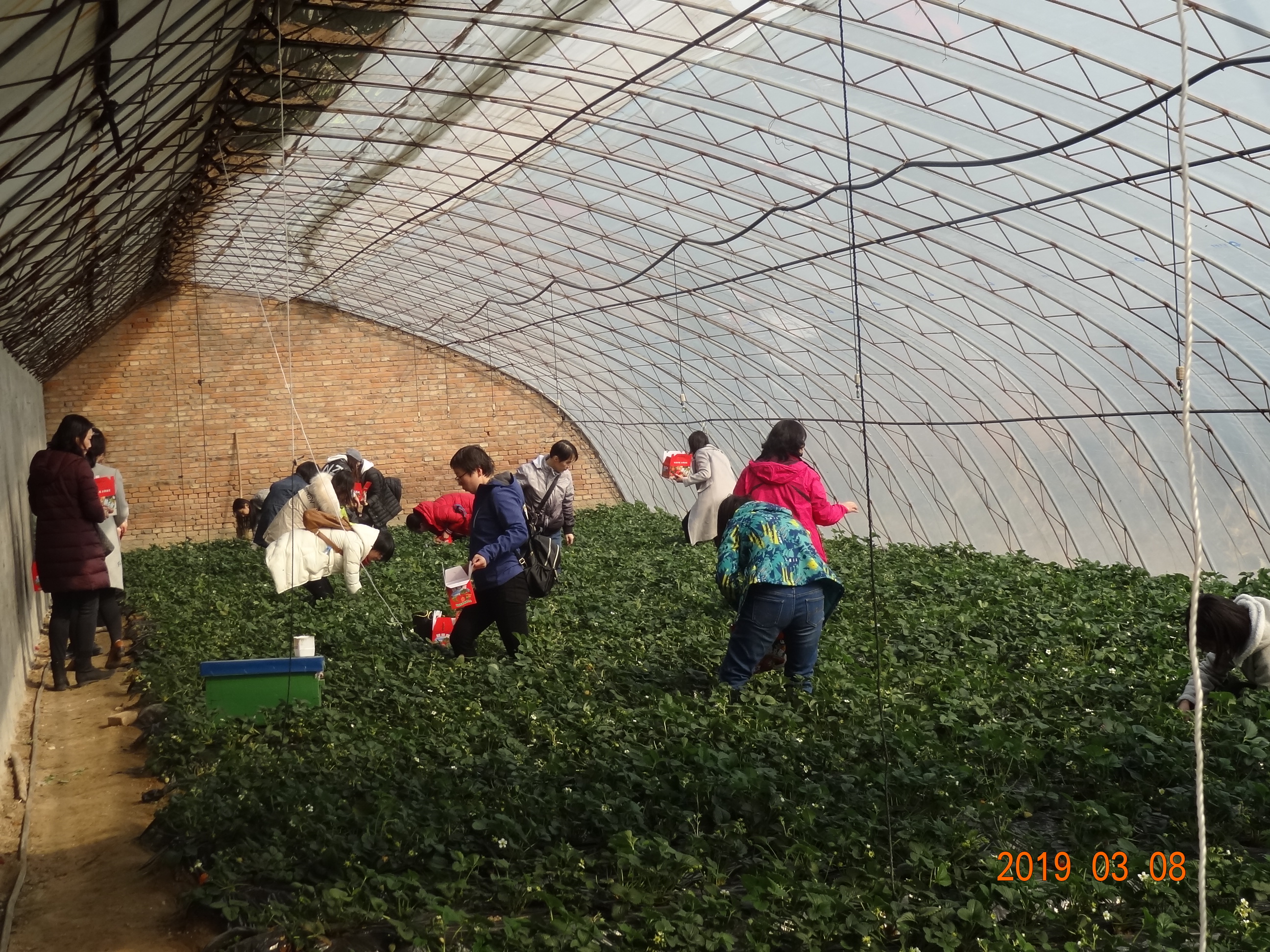 3月8日下午,大家来到位于昌平小汤山的草莓采摘园,在采摘大棚里看到翠绿的嫩叶和鲜红的果实让大家感到了春天的气息。采摘活动中,女职工们三三两两有说有笑,边摘草莓,边互相交流工作,大家都有了丰硕的采摘成果。
