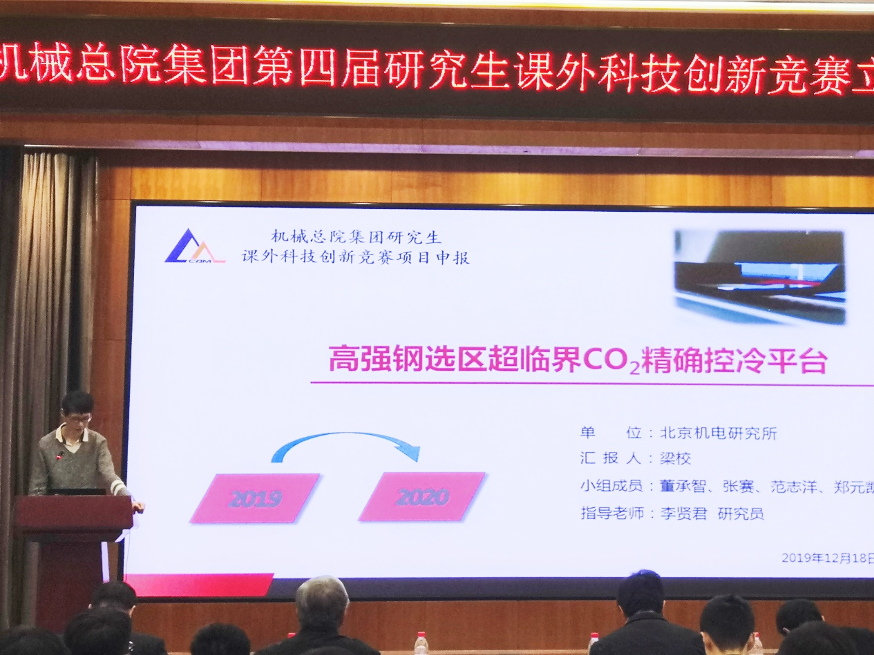 为进一步引导研究生培养科学精神和科学态度,积极学习科学知识和科学方法,培育乐于创意、精于创新、勇于创造的创新型人才,加强院内研究生的交流,12月18日,机电所研究生团队参加了机械总院集团第四届研究生课外科技创新竞赛。