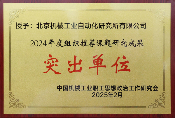 北自所荣获了2024年度组织推荐课题研究成果突出单位,课题《科技型企业创新精神的传承、发扬和实践研究》荣获中国机械政研会一类课题研究成果。