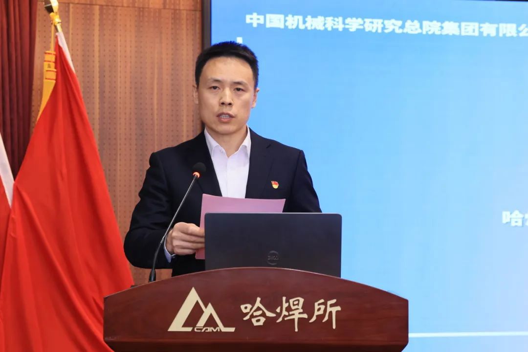哈焊所党委书记、董事长雷振致欢迎辞;集团党群工作部(党委宣传部)副部长付占文作工作报告;哈焊所、基础院围绕弘扬科学家精神、思想政治“五心”工程建设作交流发言。