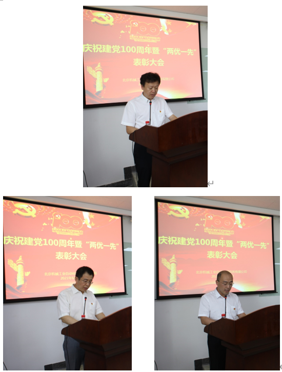 随后,“十三五红色堡垒”优秀党组织代表北自科技党总支书记王勇,“十三五红色先锋”优秀共产党员代表液压党支部党员高敬成、自控党支部党员高博,作为获奖代表分别作了交流发言。