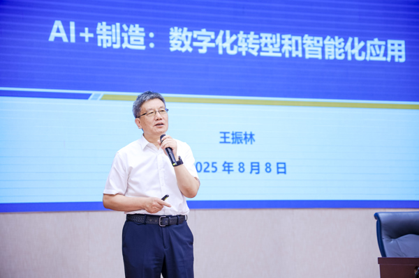 王振林在主题报告中分析了“AI+制造”背景下数字化转型和智能化应用的时代要求。他提出,随着数智化技术的快速发展,“AI+制造”存在一系列亟待解决的痛点与难点。其中,“场景”这一关键要素被提升至前所未有的高度,与算法、算力、数据共同构成了驱动 “AI+制造”落地的四维支柱。“AI+制造”关键在于找准应用场景,让场景与模型互相支撑,在数据和模型同时高效运转时,才能加快智能制造系统的持续演进。北自所作为行业智能制造解决方案的全面提供者,始终致力于推动制造业的转型升级,积极探索将AI技术与制造场景深度融合,把数智化的基因生成植入制造产业的发展脉络。