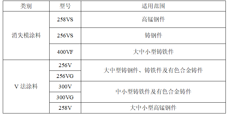 消失模涂料、V法涂料。产品可以浆状、膏状及粉状供货。