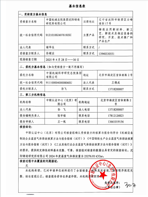 中国机械总院集团沈阳铸造研究所有限公司-2024年温室气体排放报告