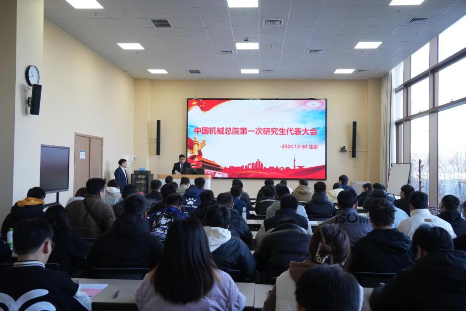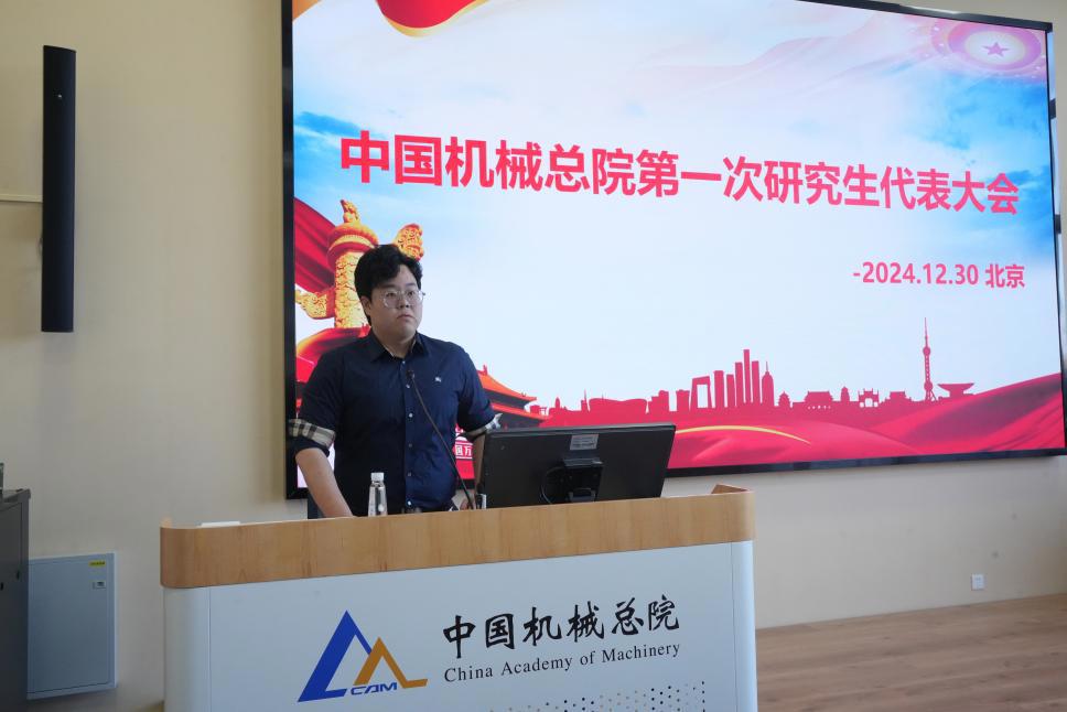 经京区研究生团委、研究生会提议,在北京市学联指导和集团团委、研究生院党支部的领导下,12月30日上午,中国机械总院第一次研究生代表大会(以下简称“研代会”)在怀柔创新基地研究生院B3楼召开。研究生院副院长、党支部书记边翊、综合处副处长李倩出席,集团12家培养单位共计75名研究生代表参加,会议以线上线下相结合的方式举办,第九届研究生会副主席王辛泉主持会议。