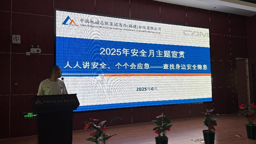 6 月 5 日,海西分院召开 2025 年度安全生产月会议。分院注册安全工程师杨挺介绍安全月主题内容与分院活动安排,并发布《关于开展 2025 年 “安全生产月”“六五环境日” 活动的通知》,为后续活动开展筑牢基础。