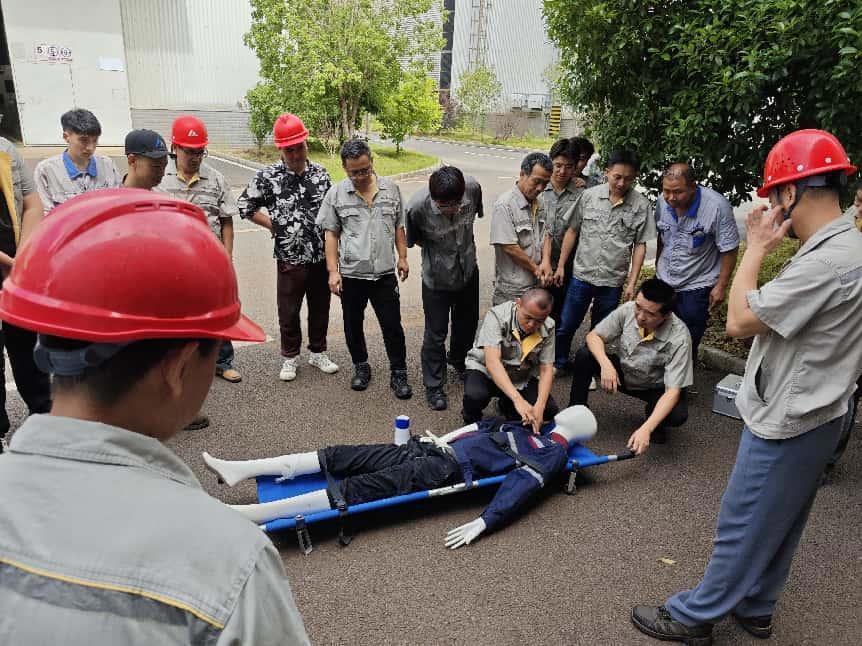 分院制定应急预案演练计划,6 月 13 日开展空压机事故人员疏散、急救应急演练,涵盖应急处置流程、人员疏散、现场警戒、人员急救等环节。通过演练完善预案体系,增强预案针对性与可操作性,提升应急能力,确保面对突发安全环保风险能迅速响应、有效处置。