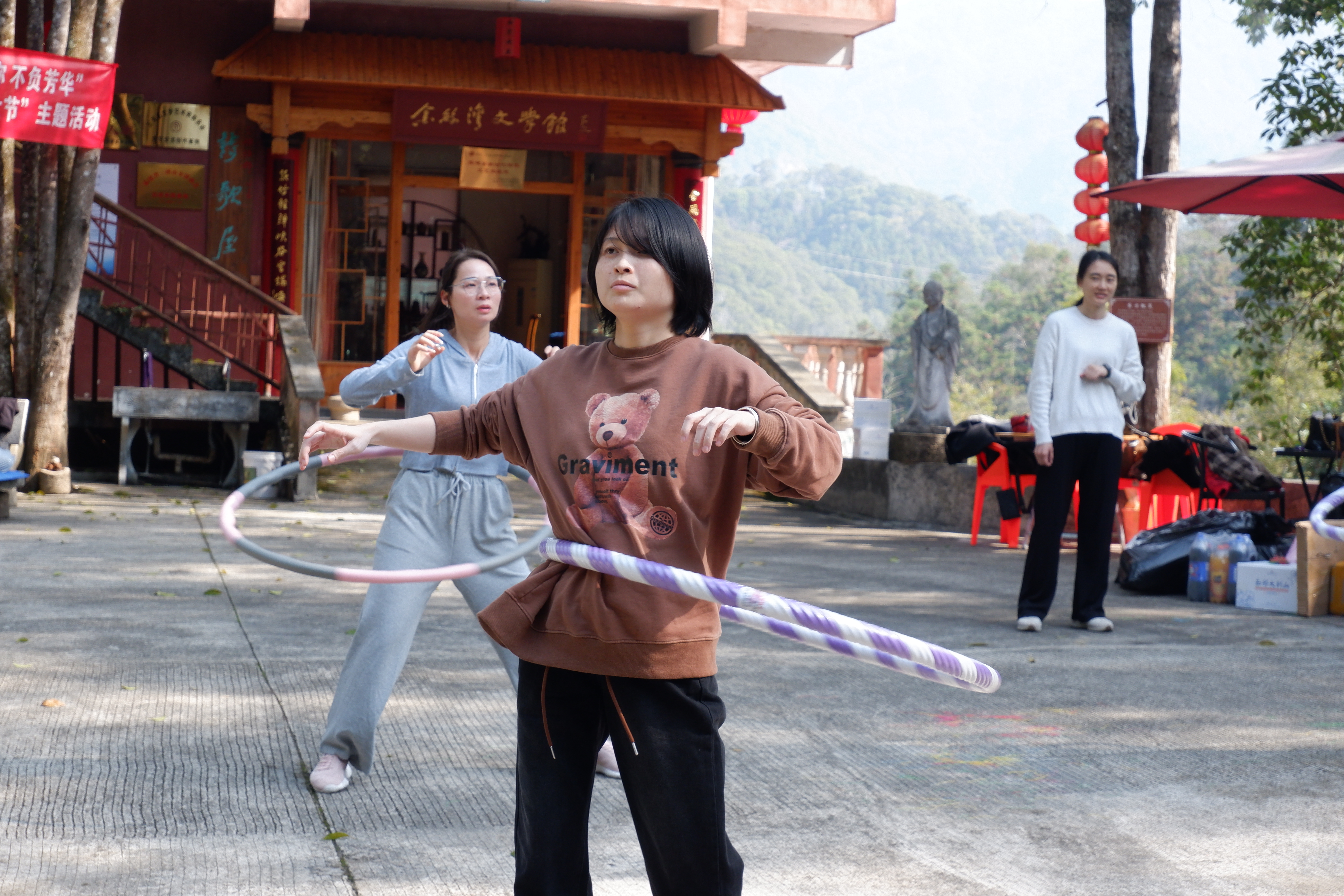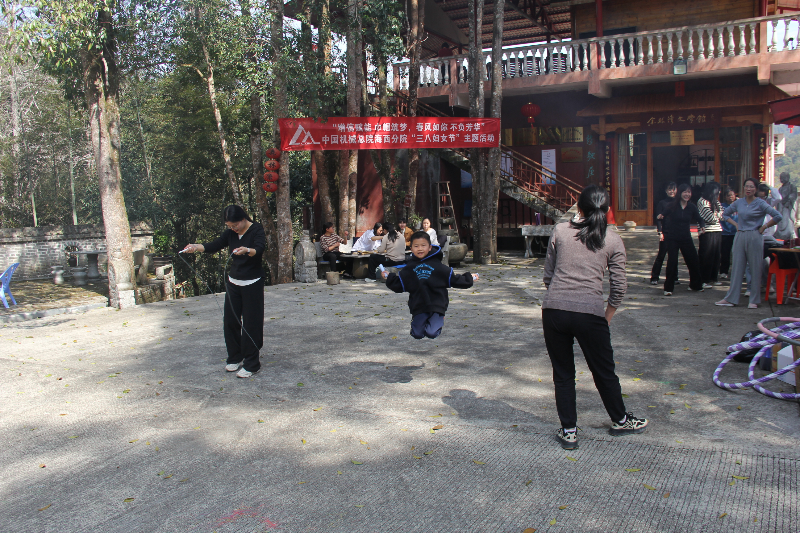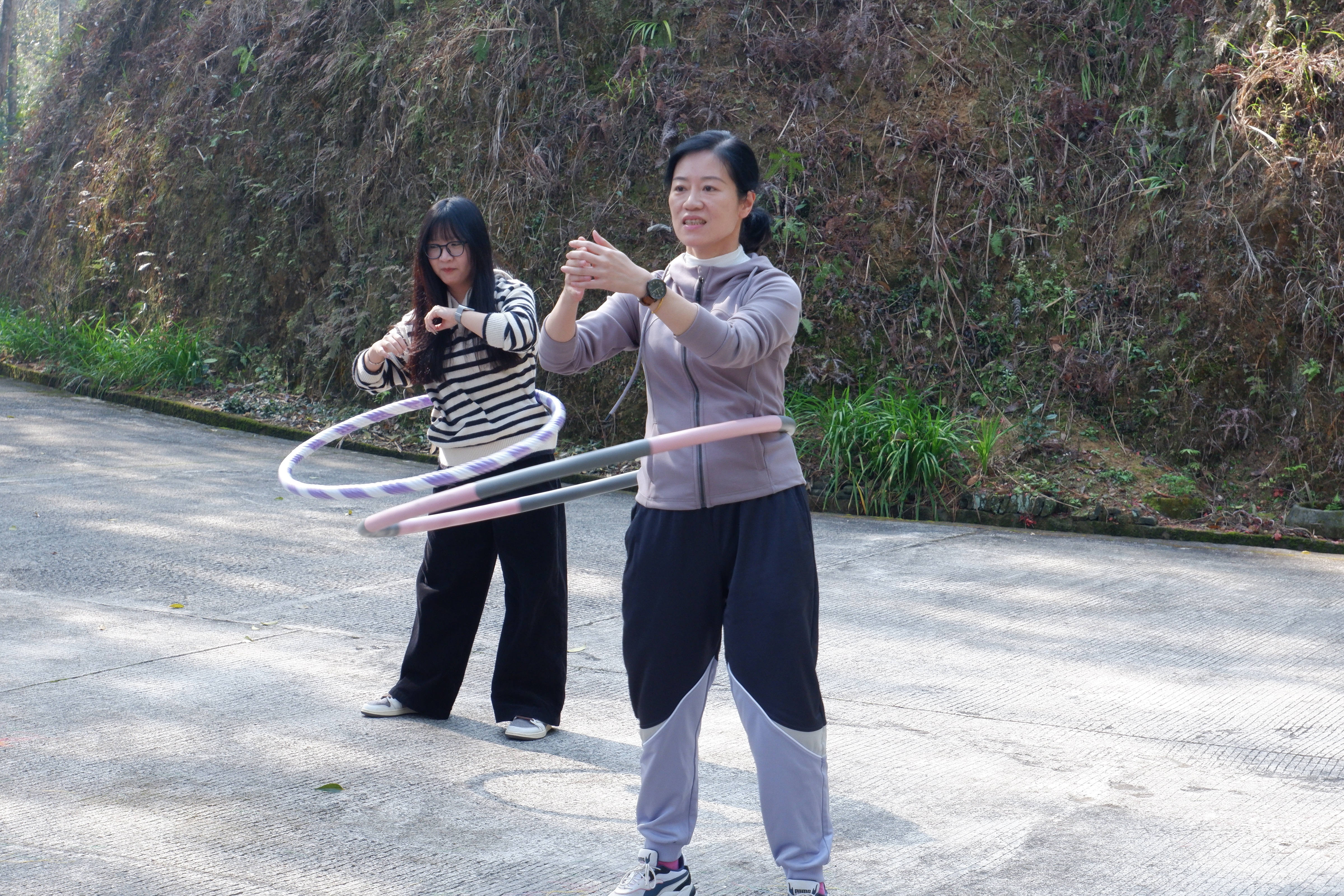 在这春日美好风光里,大家一起开展丰富多彩的体育健身活动。包括跳绳、踢毽子、呼啦圈和瑜伽健身活动。