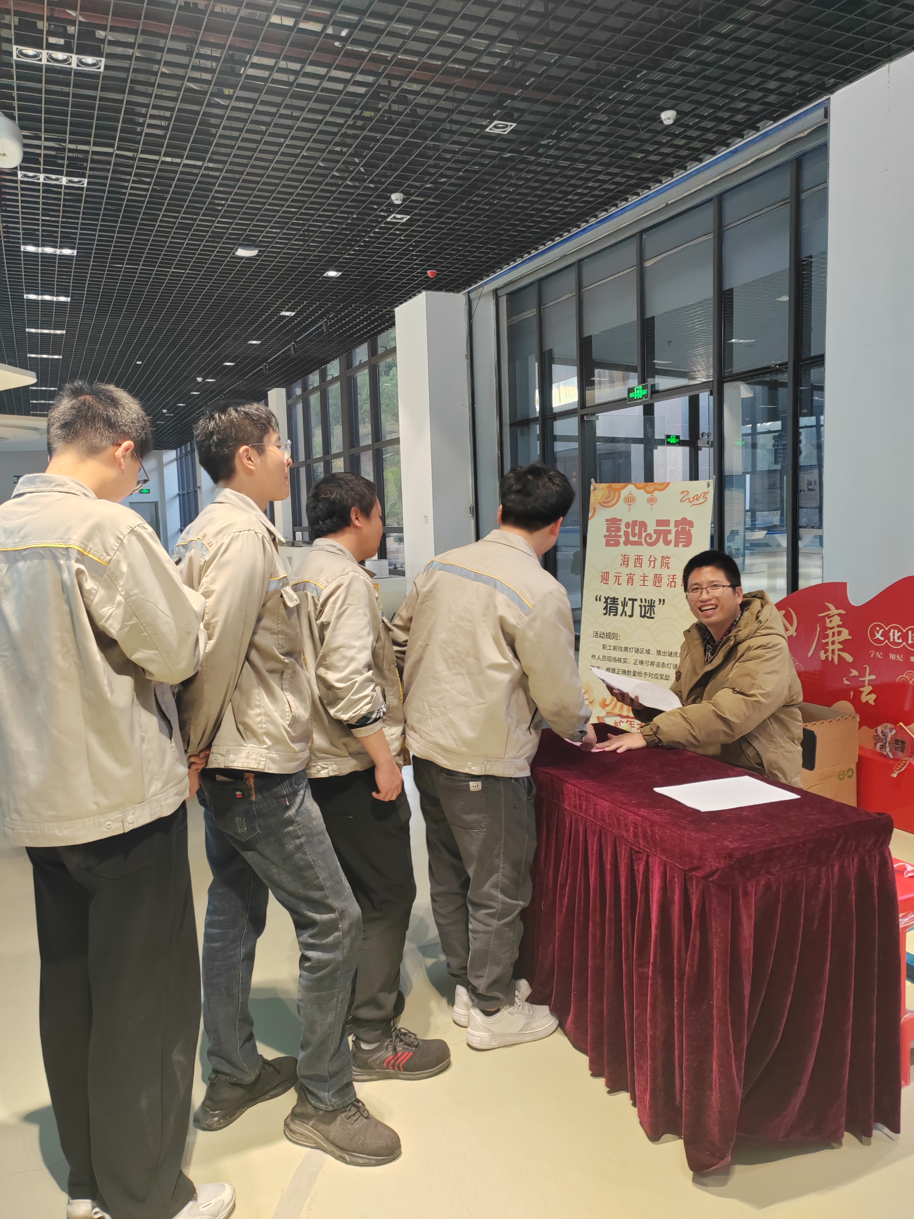为弘扬中华传统文化,丰富员工文化生活,营造浓厚节日氛围,传递关怀提振士气,让大家欢度一个温馨、愉悦的元宵佳节,2月12日,海西分院开展“灯火映团圆・欢乐庆元宵”主题活动,让全体干部职工团聚一堂,共享幸福时光,感受着“大家庭”的温暖。