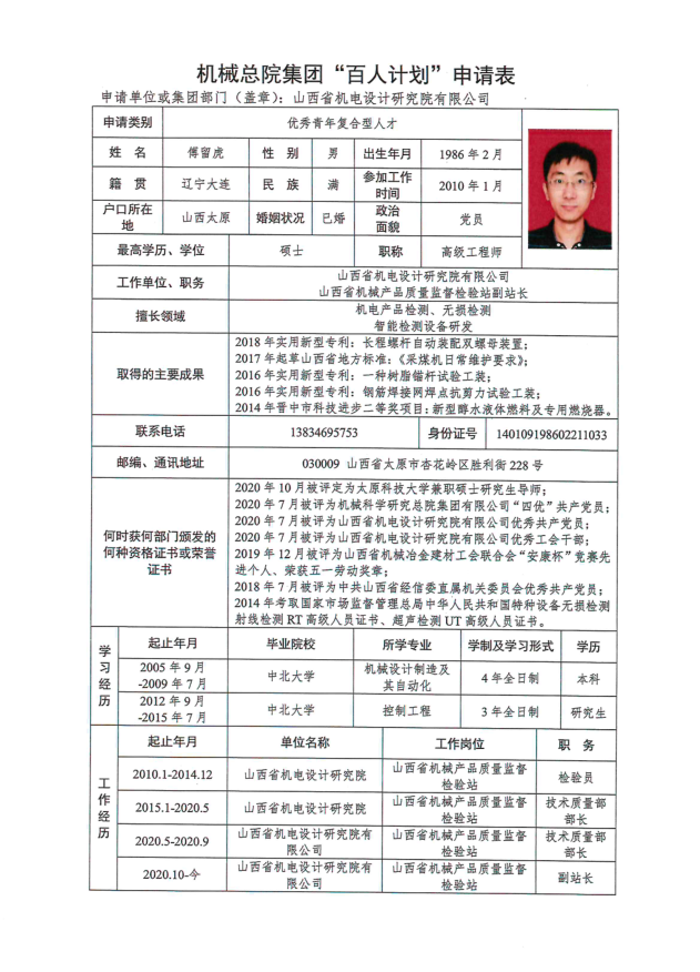 2020年度机械总院集团青年“百人计划”公示人选名单