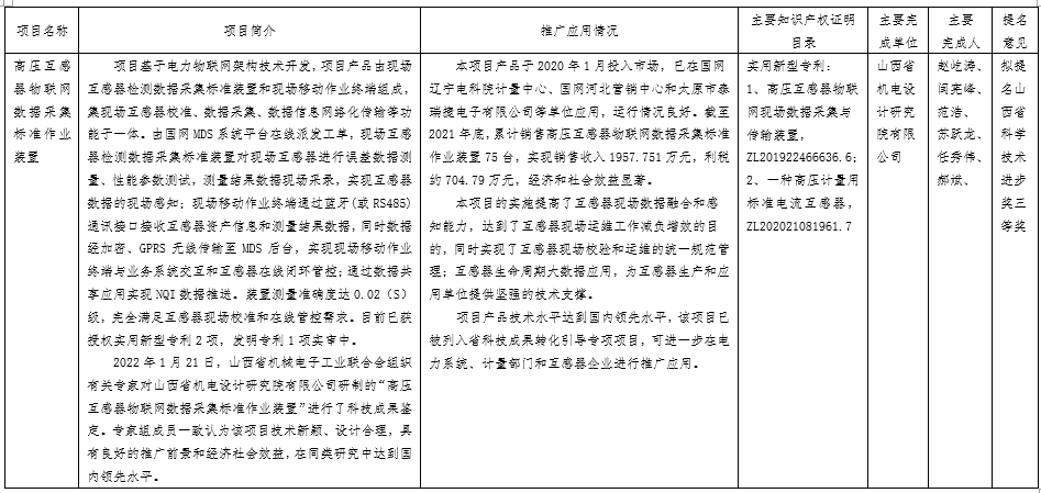 根据山西省科学技术厅《关于2022年度山西省科学技术奖提名工作的通知》(晋科函〔2022〕17号)要求,山西省机电设计研究院有限公司拟提名1个项目参评2022年度山西省科学技术奖,现按照要求予以公示,公示期为2022年5月13日至2022年5月23日,逾期不予受理。