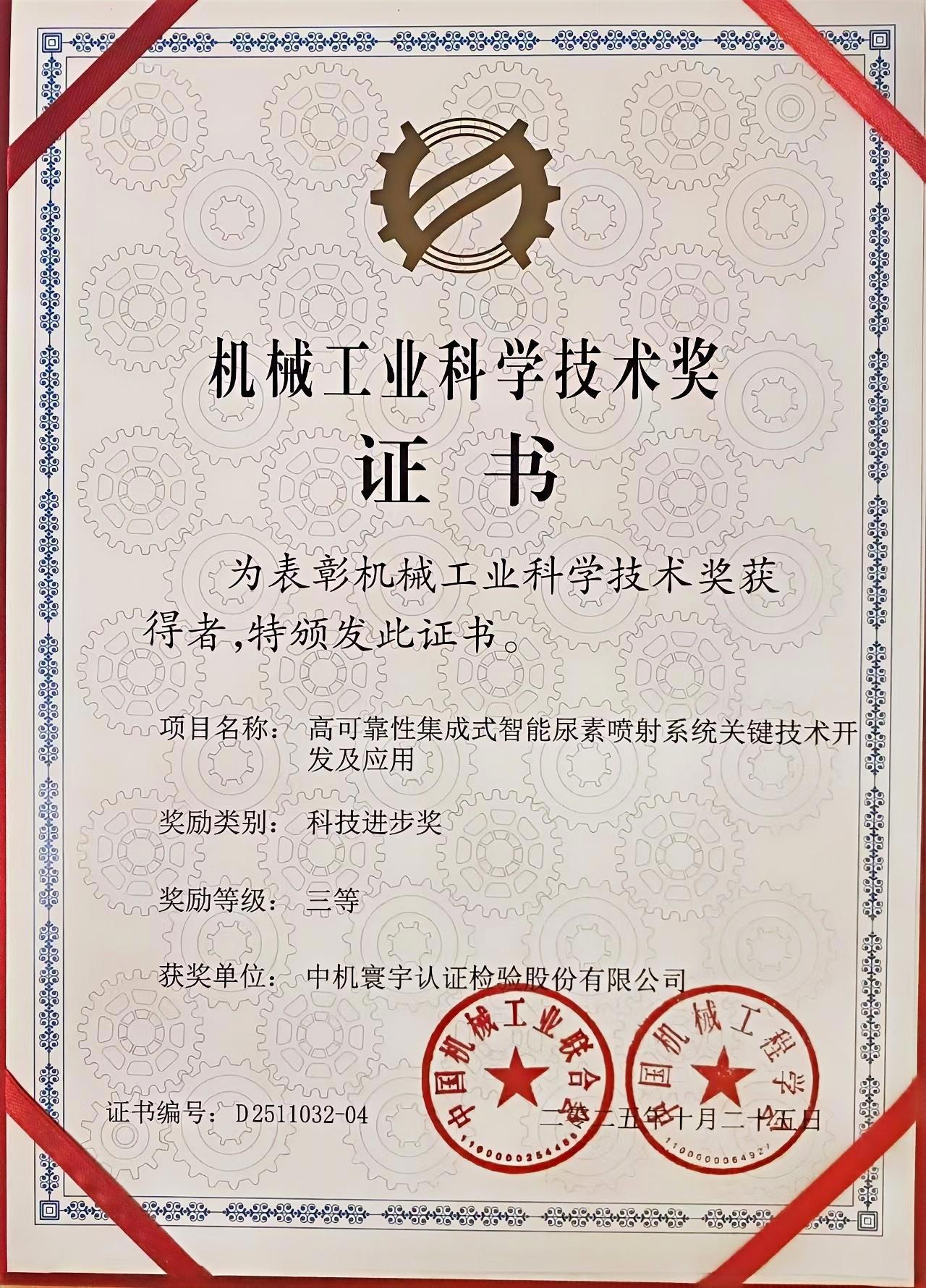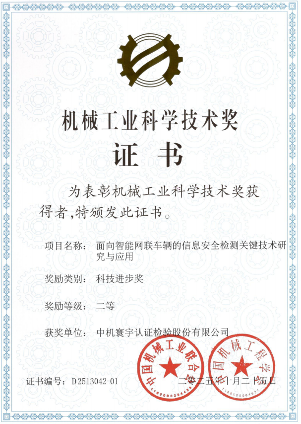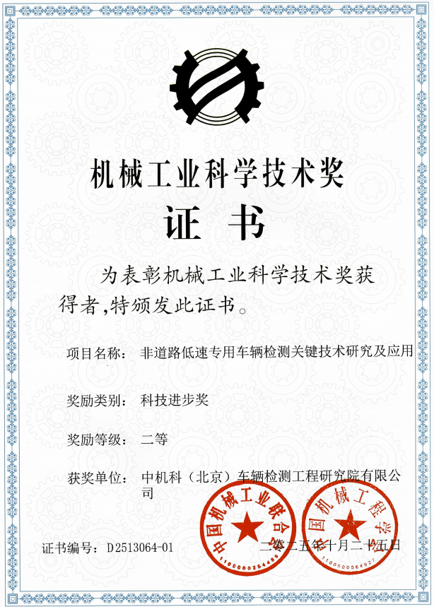 此次获奖,不仅是对中机认检在非道路车辆检测、智能网联安全、环保技术等领域技术实力的高度认可,更是对公司坚持创新驱动、服务产业发展路径的充分肯定。