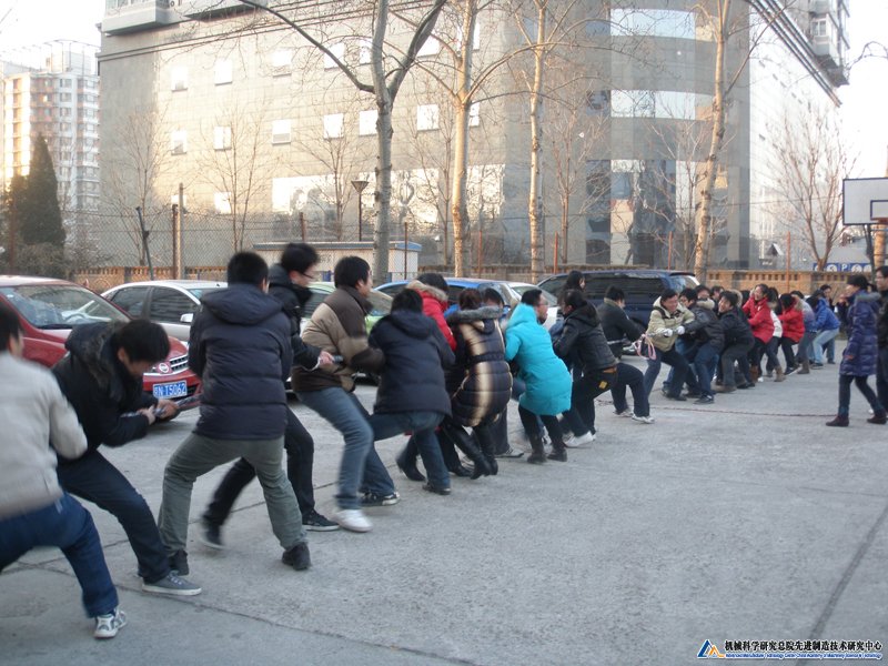 12月24日,时近圣诞,户外正寒。研究中心青年员工,热情不减,相约户外,开展一次别开生面的拔河比赛。比赛由特加所、汽配部、装备所组成的大装备所联合队和材料所、电源所、综合办等组成的综合队对决,双方队员各由10男7女组成。经过三场拉锯,最终综合队稍胜一筹,获胜两场,赢得拔河比赛冠军。