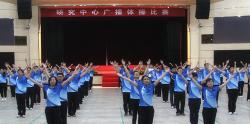 为了促进职工身心健康,丰富广大职工的业余文化生活,展现广大职工的良好精神面貌,锻炼职工的体魄, 2013年8月23日下午2点,研究中心在金五星大剧院组织举行了“研究中心第九套广播体操比赛”。比赛由研究中心工会主席杨青生主持。研究中心陈蕴博院士、乔培新书记、李保谦副主任、姜超部长、褚作明副所长、李希文技术总监和杜伟肖博士应邀出席并担任广播体操比赛的评委。