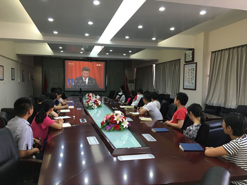 7月1日上午10时,中共中央庆祝中国共产党成立95周年大会在北京人民大会堂隆重举行,研究中心第五党支部组织首体南路全体党员干部集中观看了大会直播,共同庆祝党的生日。