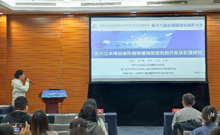 大会报告环节,实验室研究人员孙一璞博士、万涛博士、工程师陈昊,以及研究生姚旸、黄高分别围绕“耐海洋大气腐蚀低合金钢Ni-Mo合金元素设计及环境适用性研究”“负载缓蚀剂纳米容器的构建及其复合涂层防腐性能研究”“桥梁防腐涂层失效机制及在线监测研究”“金沙江水电站关键金属过流部件腐蚀失效研究”“金沙江水电站换热器用缓蚀阻垢剂的开发及机理研究”等专题作了学术报告,展现了实验室在腐蚀基础研究、材料开发、工程应用及监测评估等方面的系统研究能力。