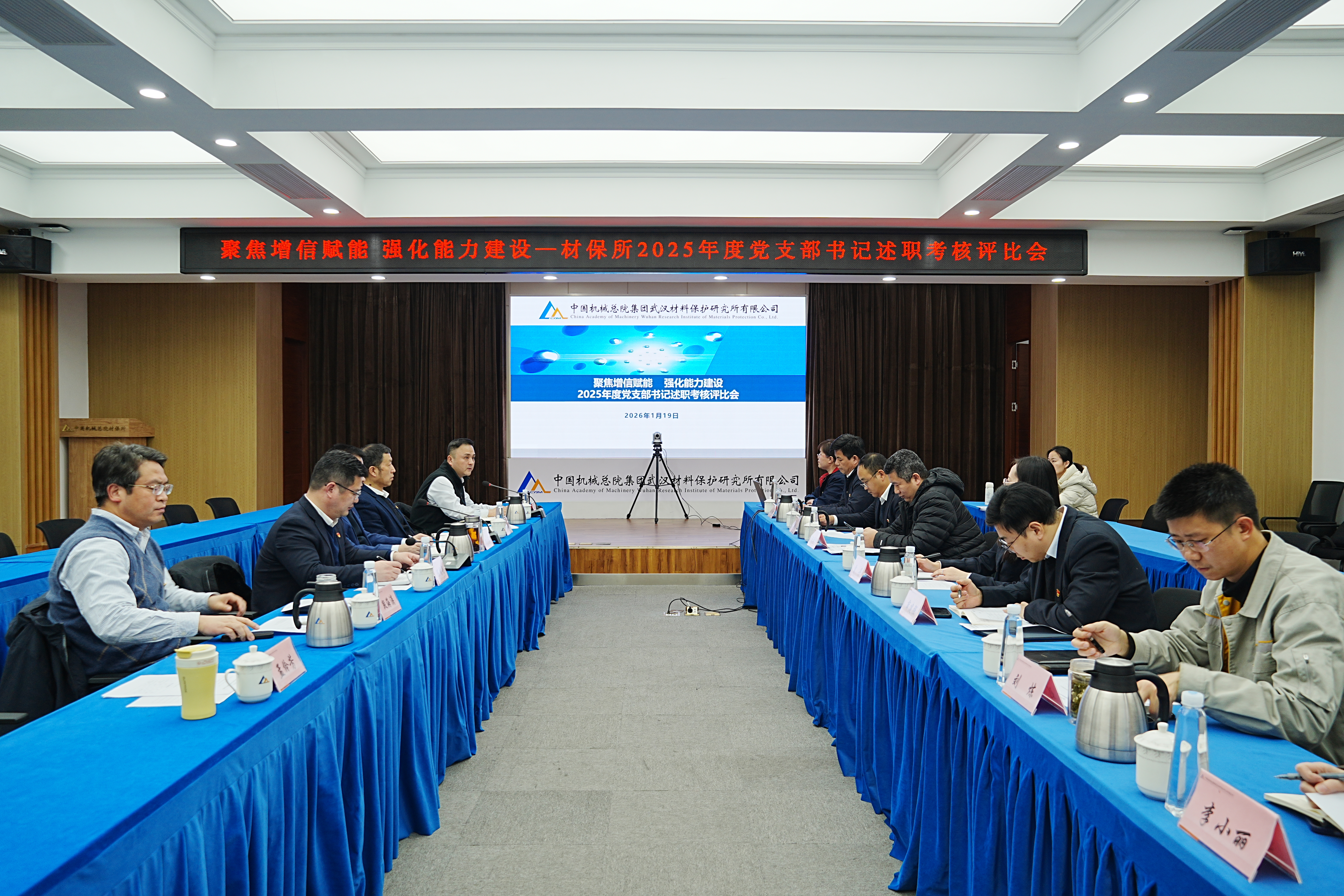 为深入学习贯彻党的二十届四中全会精神及习近平总书记对中央企业重要指示精神,切实提升党支部书记履职能力与党支部标准化规范化建设水平,1月19日,材保所党委召开2025年度党支部书记述职考核评比会。集团党群工作部组织处处长杨敬明视频参会督导,会议由公司党委委员、纪委书记方正主持。公司领导班子成员、考评小组成员及支部书记参加会议。
