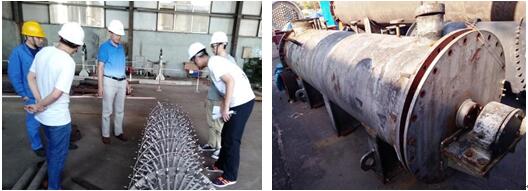 其后,参观了生产加工车间及造粒机磨损腐蚀失效后状况。
