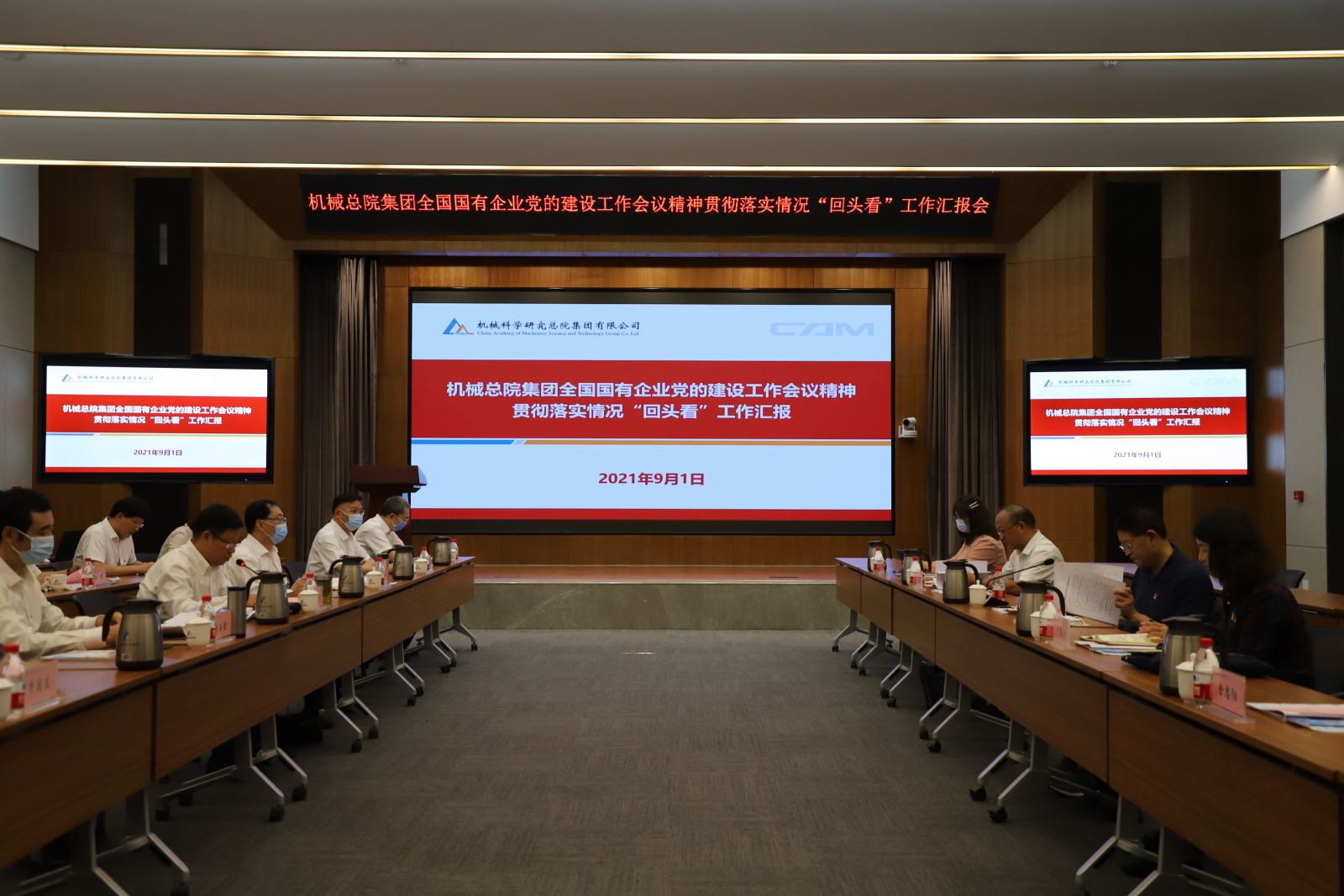 9月1日,中央企业党史学习教育第八指导组组长马宗林一行到集团就全国国有企业党的建设工作会议精神贯彻落实情况“回头看”进行现场督导。集团党委书记、董事长王德成汇报“回头看”工作,马宗林作指导讲话。