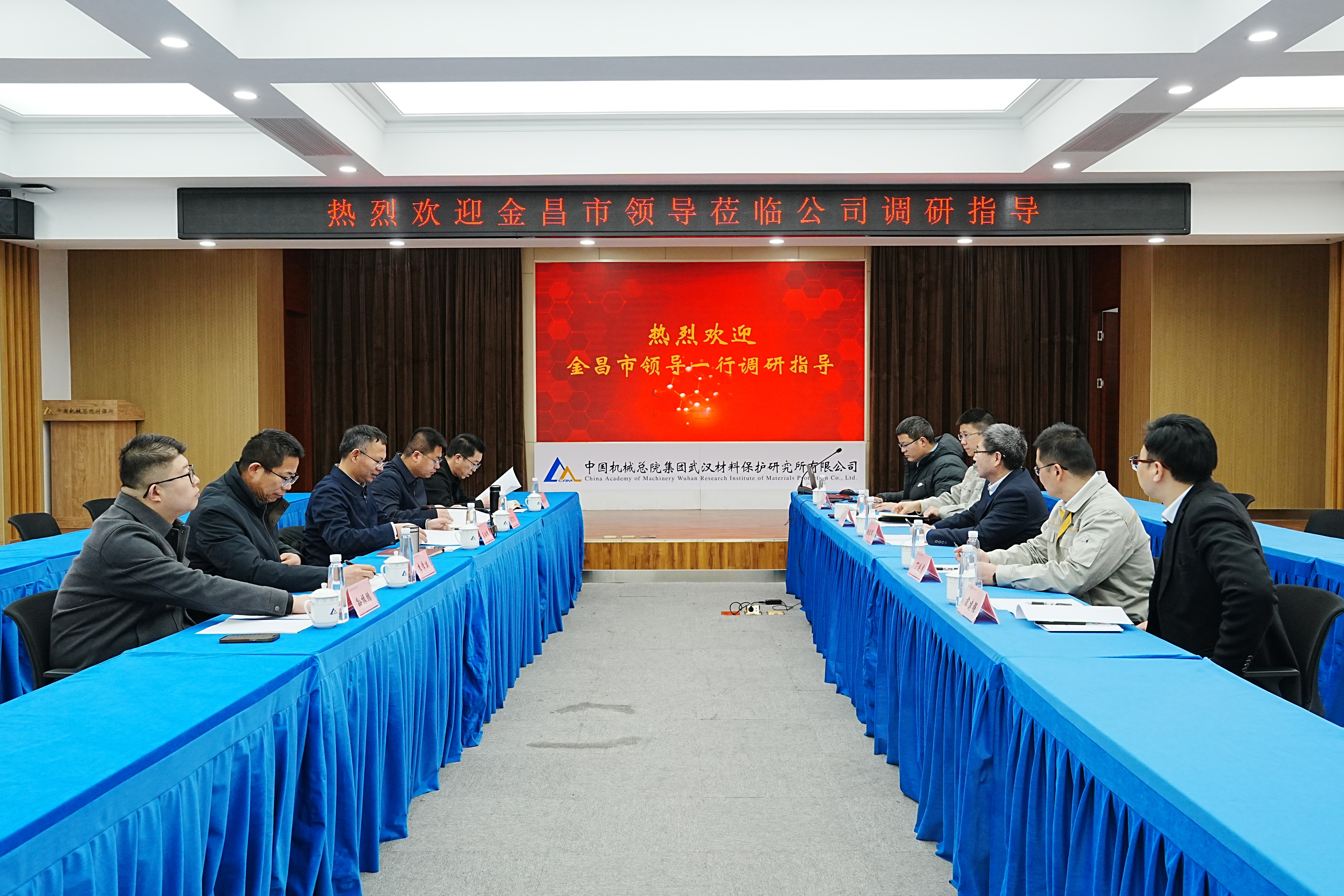 金昌市永昌县政府、金昌市工信局、永昌工业园招商局等负责同志,材保所总经理助理、表面处理事业部总经理丁运虎,科技质量部,综合管理部,规划运营部相关人员参与座谈。