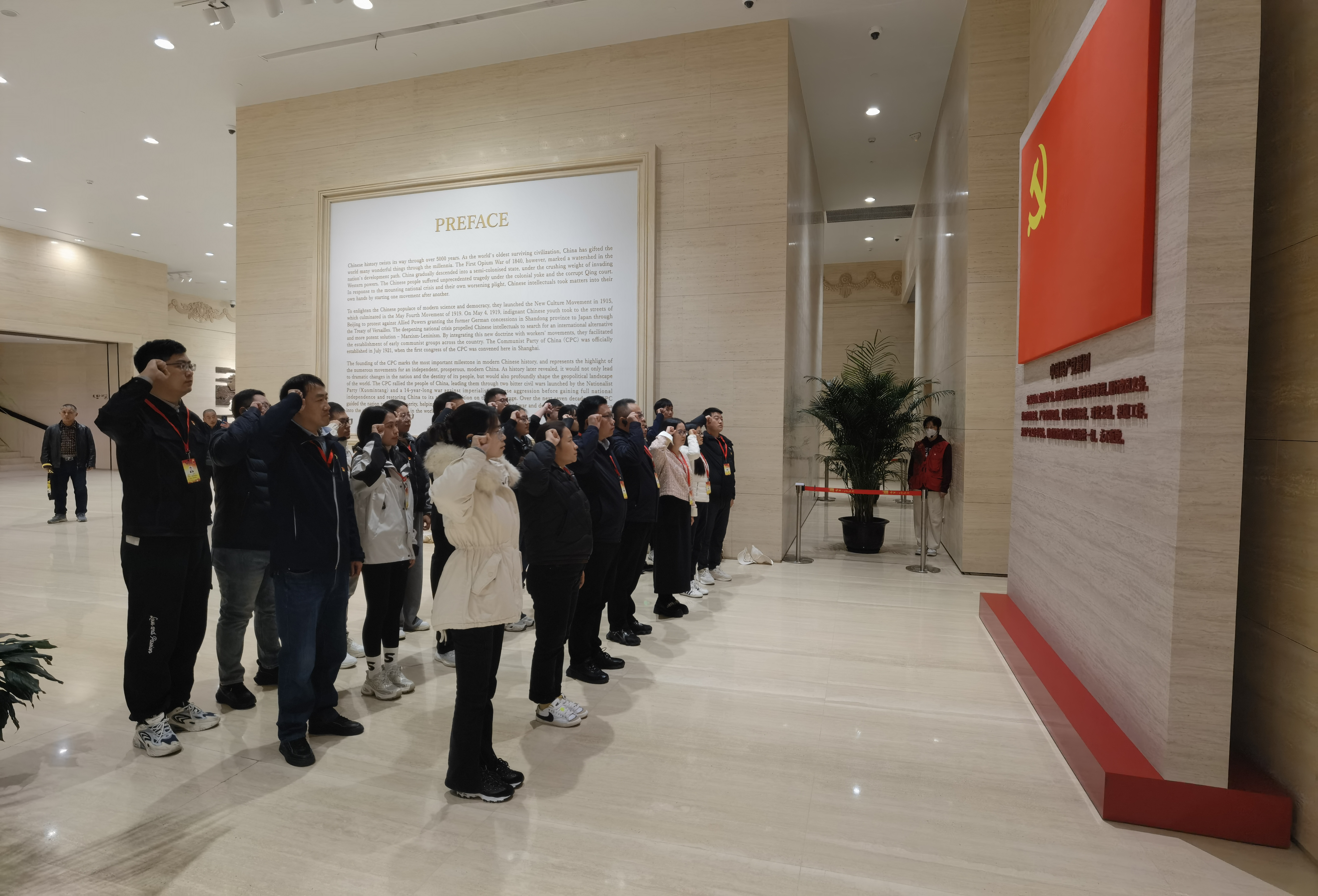 参观过程中,在宣誓大厅,全体党员面向庄严的党旗,高举右手,重温入党誓词,以庄严的宣誓坚定了听党话、跟党走的决心。