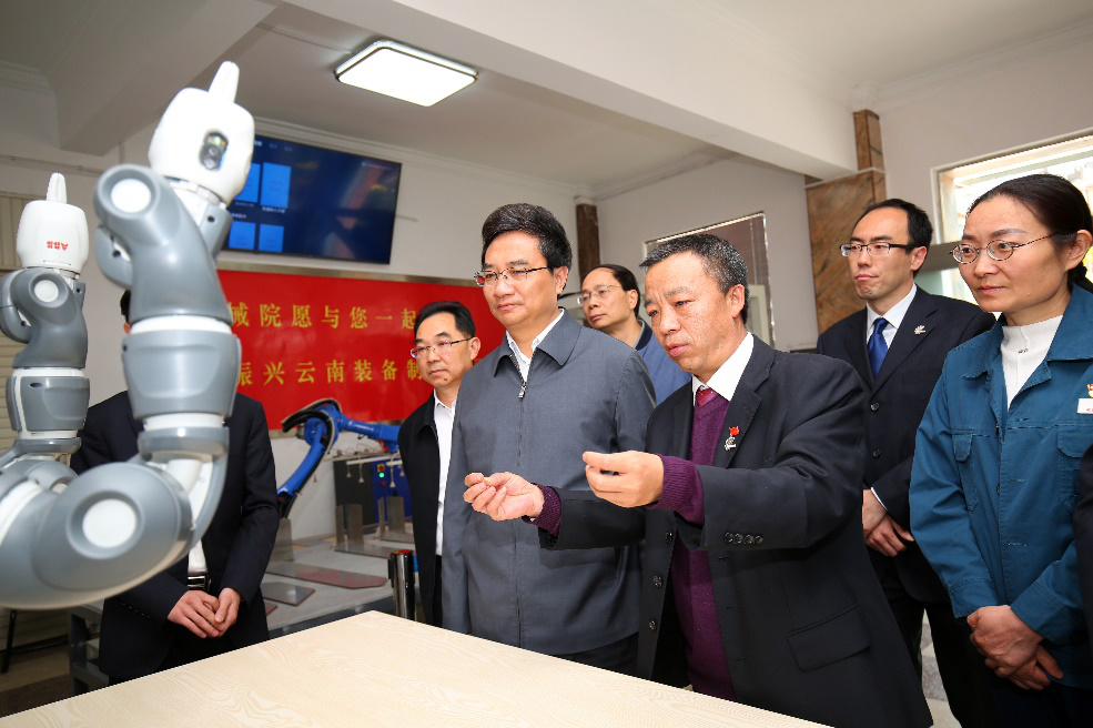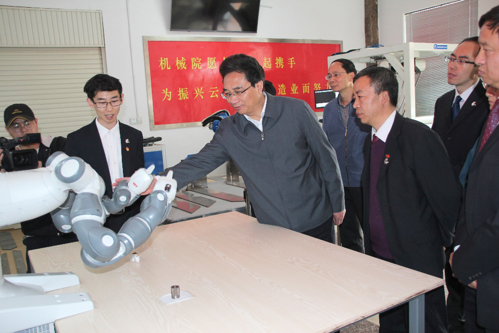 董华副省长现场察看了云南省工业机器人应用工程技术研究中心、国家机械工业机床质量检测中心(昆明)和云南省程耿东院士工作站,并与科技人员进行了亲切的互动交流。听取了省机械研究设计院在行业服务、学科建设、科技创新、科研条件人才队伍建设及先进智能制造领域开展等方面的情况汇报和发展中面临的问题和建议。