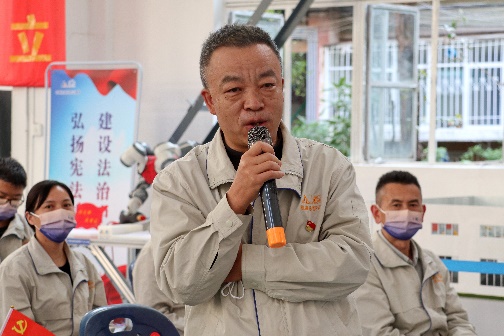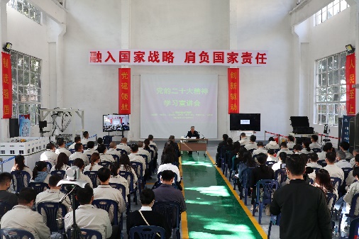 朱院士在云南院检测试验大厅,从参会感受、二十大代表产生与会议过程、二十大会议精神、勇于创新等三大方面,以鲜活的事例、通俗的语言、真切的情感生动讲述了参加党的二十大的切身感受,对会议精神进行学习解读、宣传阐释。