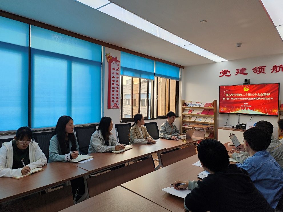 11月20日,云南院团支部通过支部书记讲团课的方式,以“凝‘新’聚力在云南院高质量发展实践中团结奋斗”为题,引领团员青年进一步深入学习党的二十届三中全会精神。