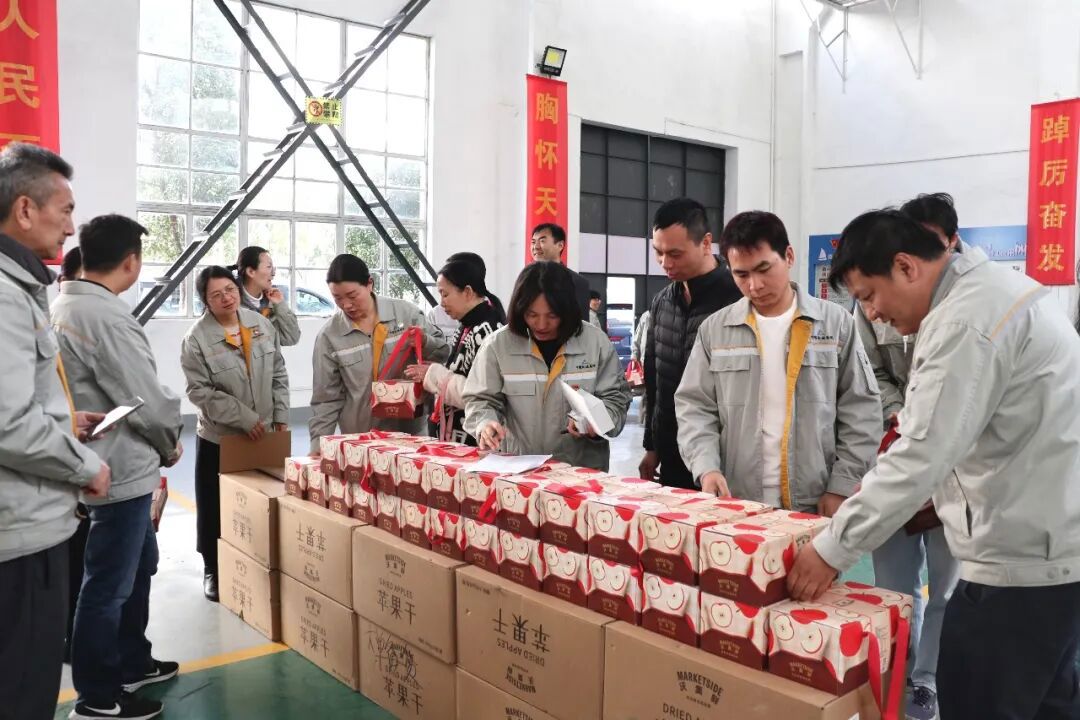 活动现场温馨有序,慰问小组同在场职工亲切交流,并发放慰问品。